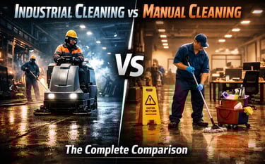 In this blog, you'll get a clear, honest comparison of industrial cleaning and manual cleaning across the areas that matter most to businesses: efficiency, quality, cost, and scale. By the end, you'll have everything you need to decide which approach is right for your facility.